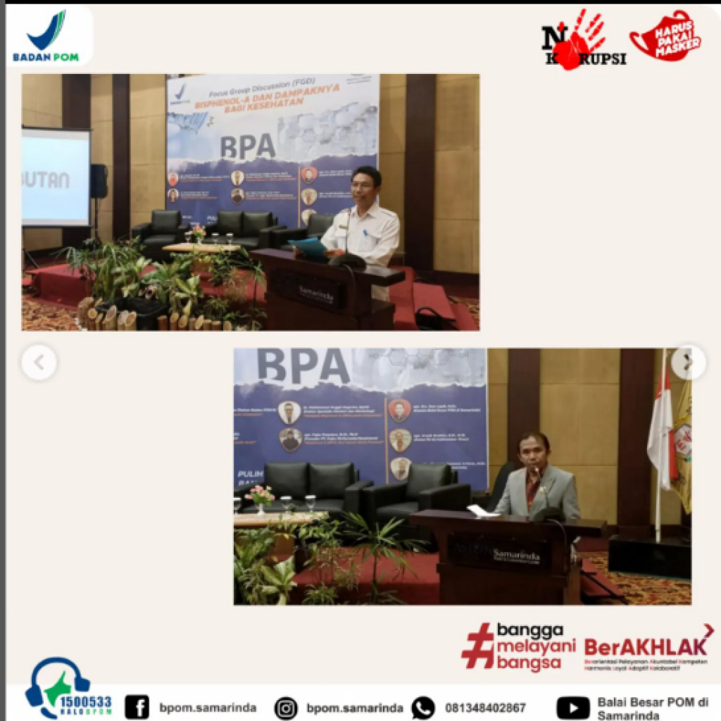 Pengurus Cabang Ikatan Apoteker Indonesia (IAI) Samarinda bekerja sama dengan Balai Besar POM di Samarinda menggelar acara Forum Group Disscusion (FGD) BPA dan Dampaknya bagi Kesehatan pada tanggal 7 Desember 2022.